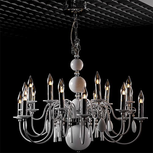 Люстра 18 HORNS: V2552 рассчитана на 18 ламп с цоколем G4 и мощностью 20W. Выполнена в цветах хром.